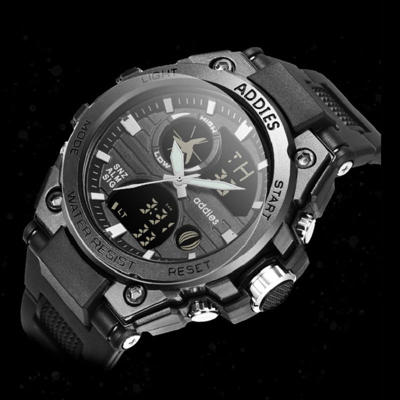 Outdoor tactical sports watch, dual display movement, alarm clock prompt, night energy storage automatic light pointer, multi-color optional, stainless steel waterproof cover, 30 meters waterproof high quality watch